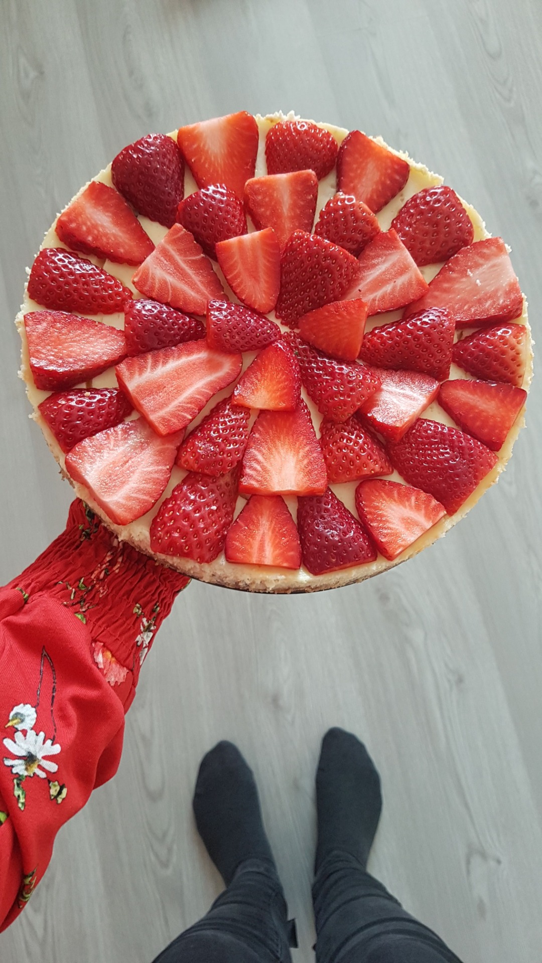 Nakonec necháme vychladnout v lednici aspoň 3 hodiny, ale lepší je přes noc :) -ozdobíme jahůdkami.